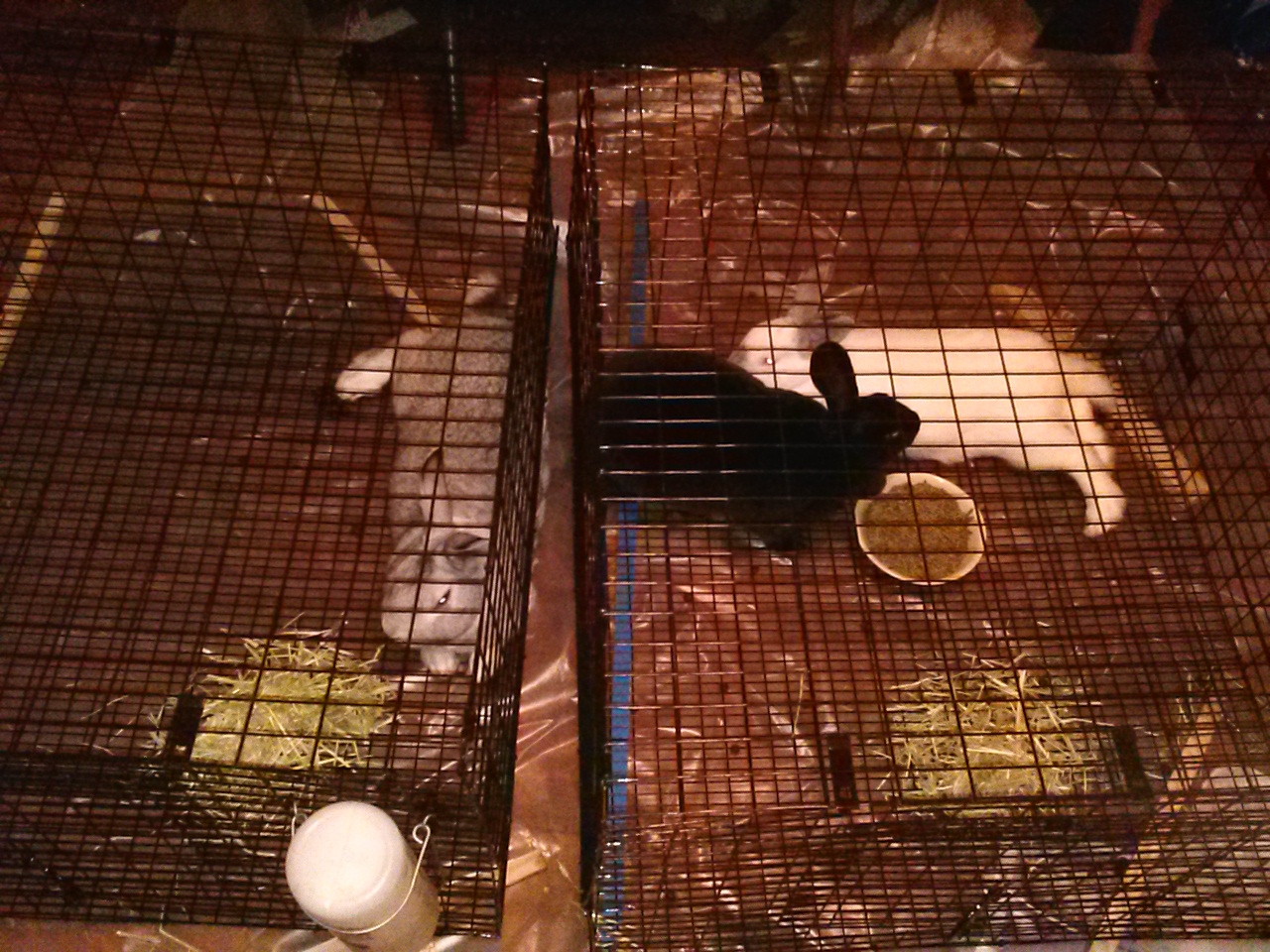 There is a black female (I guess she is a Rex), a white female, and a big grey buck. The guy I got them from had the black female together with the male. He said she’s due to have a litter soon (within 2 weeks). We were going to get them settled in before breeding them; so this puts a bit more of a rush on things.