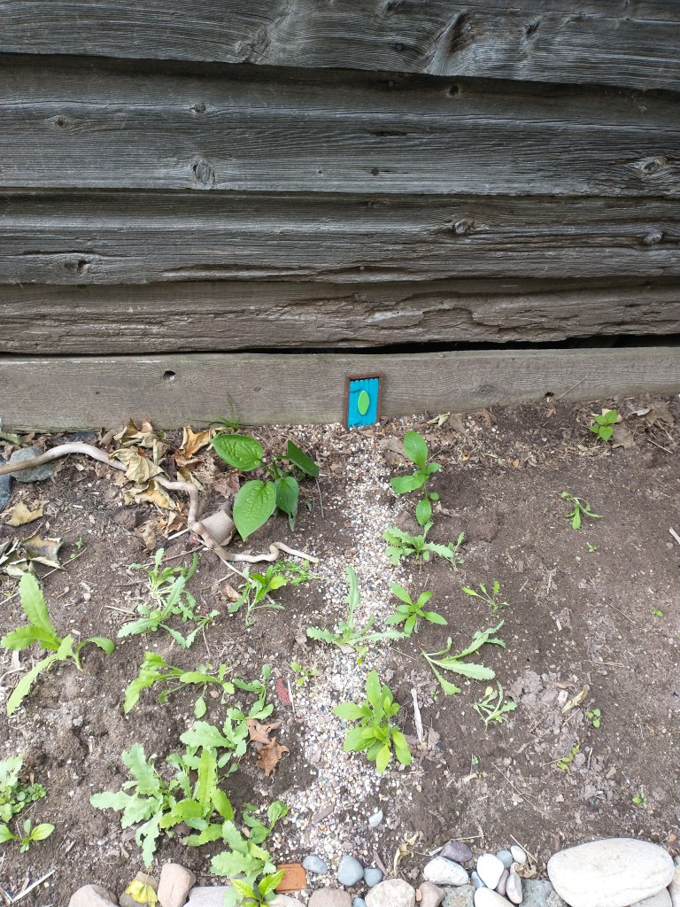 Some pics of our pathways in our Cottage Garden. My husband has been placing stones to outline all the pathways and it looks really nice. So far, we have not had a return of whatever animal was messing my stones up last year.Here is a fairy door my husband put in, against the chicken coop/cottage building. The flower bed in front of it is supposed to be full of poppies. They are slowly appearing (I seeded it with tons but it’s not as full as it should have been).